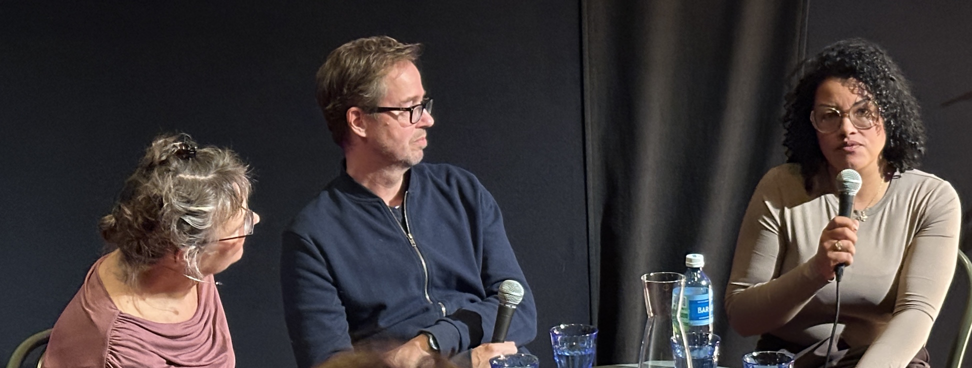Gespreksleider Miekel van der Zande vroeg na de filmfragmenten en het gesprek op het podium of er vragen waren. Het bleef stil. Toen meldde ik mij als bestuurslid van Leergeld Groningen. In het eerste fragment zagen we moeder Lolkje met de brief van Leergeld. Voor haar was dat niet alleen de vreugde om gymspullen voor haar dochter, maar ook een rot gevoel over formulieren invullen en dat je dit niet kunt betalen uit je eigen portemonnee. Ik wilde graag weten hoe de filmmaker en de ervaringsdeskundigen aankijken tegen een club als Leergeld. Thomas Blom was blij met mijn vraag. Belangrijk dat organisaties stilstaan bij hoe hun werk beleefd wordt door betrokkenen. In de gemeente Zwolle zijn er 42 regelingen voor mensen in armoede. Veel regelingen kennen veel controle omdat er veel wantrouwen is. Gelukkig is dat bij Leergeld niet het geval. Na de aanvraag hoeft alleen de Stadsjerpas getoond te worden of een bewijs van een inkomen tot 120% sociaal minimum. Leergeld opereert vanuit vertrouwen. Selima was ook positief over Leergeld, maar noemde het wel ‘pleisters plakken’. Zowel Thomas Blom, als Selima en Carmel benadrukten de wens dat aanvragen makkelijk gemaakt moeten worden en behandeld worden vanuit vertrouwen. Wat zou het fijn zijn voor een gezin die hulp nodig heeft bij een partij terecht kan voor empathische hulpverlening door ervaringsdeskundigen en een partij die direct benodigde middelen bij elkaar kan rapen voor het gezin!